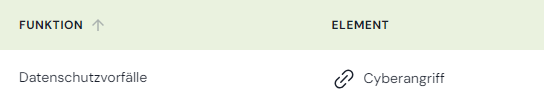 In der Spalte Funktion sehen Sie, auf welches Feature im Hauptmenü sich das zuletzt bearbeitete Element bezieht. In der Spalte Element wird Ihnen der Titel des Dokuments angezeigt. In dem Beispiel unten handelt es sich also um den Datenschutzvorfall namens Cyberangriff. Nun können Sie auf die Verlinkung klicken oder auf das „Bearbeiten“-Icon, um direkt in das Dokument zu springen.